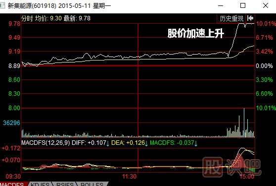 如圖所示,2015年5月11日,新集能源(601918)開盤后雖然持續(xù)上漲,但是上漲的速度很慢,臨近收盤前半小時的漲幅仍不足3%。