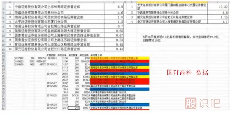 套利案例二(國軒高科5月16日公告,計劃減持2.4億股,按照當日的收盤(pán)價(jià)計算,合約金額接近79.2億;隨后連續不斷的有大宗交易進(jìn)行。通過(guò)數據計算,通過(guò)大宗交易有近20億,占總的1/4