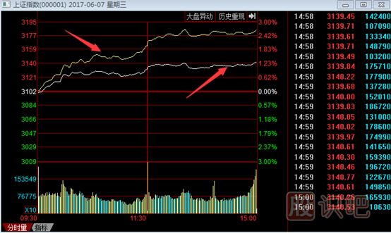 看到了嗎,圖中箭頭所指的黃色曲線(xiàn)和白色曲線(xiàn)就是大盤(pán)的分時(shí)價(jià)格走勢。細心的投資者,會(huì )發(fā)現,為什么同一個(gè)大盤(pán)指數點(diǎn)位,為什么會(huì )由2條曲線(xiàn)表示?到底哪條價(jià)格曲線(xiàn)才是大盤(pán)真正的指數點(diǎn)位呢?