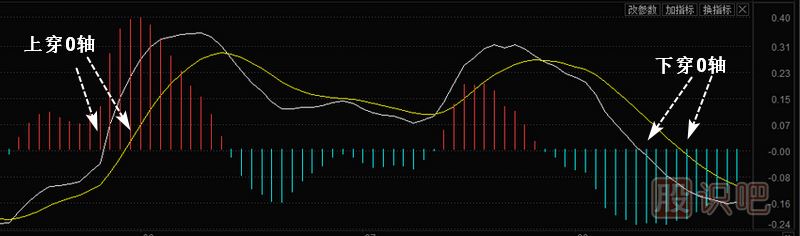 ③0軸在指標中一般代表多空力量的分水嶺,0軸之上表示多頭市場(chǎng),0軸以下表示空頭市場(chǎng)。0軸交又又分為兩種情況,如圖4所示:一種是指標曲線(xiàn)由下向上穿越0軸,表示股價(jià)由弱勢轉為強勢,行情看多,是買(mǎi)入的信號;另一種是指指標曲線(xiàn)由上向下穿越0軸,表示股價(jià)山強勢轉為弱勢,行情看空,是賣(mài)出的信號。