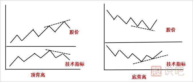 (3)指標的背離。指標的背離現象在使用技術(shù)指標時(shí)應引起投資者的高度關(guān)注。它指的是技術(shù)指標曲線(xiàn)波動(dòng)的趨勢與股票價(jià)格曲線(xiàn)運行趨勢沒(méi)有形成一致,當背離的走勢一旦出現,表示價(jià)格的變動(dòng)沒(méi)有得到指標的支持。背離的最大作用在于:雖然價(jià)格目前來(lái)講還沒(méi)有出現上漲或下跌,但是指標可以提前預測出股價(jià)的頂部或底部區域。背離可分為頂背離和底背離。