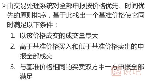 如果有一個(gè)以上基準價(jià)格滿(mǎn)足集合競價(jià)條件,滬市選取幾個(gè)價(jià)格中間值為成交價(jià),深市選取離前收盤(pán)價(jià)最近的價(jià)格為成交價(jià)