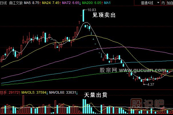 曲江文旅(600706)該股屬于典型的主力完全操控的股票。在該股連續上漲的過(guò)程中濃縮了操盤(pán)非常重要的技巧。主力在8元附近開(kāi)始最后拉升,連續5個(gè)漲停,這5個(gè)漲停非常精彩,第一個(gè)漲停是放量漲停,當時(shí)還有很多人賣(mài)出;(上漲當中拋壓大小取決于賣(mài)盤(pán)。當漲停板的時(shí)候賣(mài)的人越多拋壓就越大。反復打開(kāi)漲停封不住就會(huì )引發(fā)不堅定分子賣(mài)出手中籌碼,最后再牢牢封死。主力這樣操盤(pán)可以吸到足夠的籌碼。)第二個(gè)漲停以高開(kāi)實(shí)體大陽(yáng)漲停,成交量比第一個(gè)漲停??;第三個(gè)漲停低開(kāi)高走再次以實(shí)體大陽(yáng)漲停,成交量比第二個(gè)漲停更??;連續三個(gè)漲停之后,第四個(gè)漲停就不費力氣地直接沖上去了;第五個(gè)漲停極度縮量,“一”字漲停。已經(jīng)形成超級強勢股的特點(diǎn),讓所有人都認為該股還要繼續上漲,而麻痹持有該股的投資者是主力最后出貨要制造的假象。結果第六個(gè)漲停以漲停開(kāi)盤(pán)一路殺到跌停板收盤(pán)放出天量。這個(gè)就是我們所說(shuō)的高位天量出貨。次日再跳空低開(kāi)低走,再次放量出逃。這個(gè)時(shí)候持有的人都想10.83元沒(méi)有走,現在才9元多,等反彈再賣(mài)出了。結果后面再也沒(méi)有什么技術(shù)反彈了,一路暴跌,7個(gè)跌停板狂跌到7元以下,橫盤(pán)之后再次跌破平臺,6元以下還沒(méi)有支撐。在非常短的時(shí)間之內跌去50%。在主力瘋狂高位出貨之后的個(gè)股通常都會(huì )出現尸橫遍野,血流成河。當然只要投資者在參與ST活躍股操作的時(shí)候,要注意慣性理論,在上漲過(guò)程中不斷慣性漲停,在下跌過(guò)程當中不斷慣性跌停,只要把握住這個(gè)特征,就能夠很好地賺取ST活躍股的利潤。