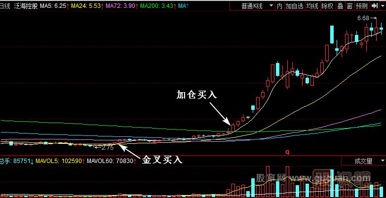 泛海建設(000046)是非常典型的機構扎堆瘋狂操作的超級大。該股的走勢是所有研究強勢大牛股的投資者必須研究的重要品種。該股從2.75元開(kāi)始慢慢上漲,突破了生命線(xiàn)之后股價(jià)開(kāi)始加速上漲。當K線(xiàn)圖形成了寬大的底部形態(tài)之后,圓弧的上漲漸漸形成了一種趨勢。主力已經(jīng)不想隱藏自己吸貨的目的,大盤(pán)的啟動(dòng)已經(jīng)非常明確了,而該股絕對價(jià)格還在3元附近,超級低價(jià)股是誕生的基地。絕對價(jià)格越低是后面翻倍的很重要的因素,當然,那些業(yè)績(jì)是良好的,價(jià)格低只是受到漫長(cháng)的熊市影響造成的。大盤(pán)已經(jīng)清晰地表現出一波超級大牛市即將噴薄而出。這個(gè)時(shí)候很多股票還沒(méi)有完全醒悟過(guò)來(lái),還在熊市的氛圍徘徊。泛海建設已經(jīng)有強大的資金在里面活躍,吸籌已經(jīng)進(jìn)入尾聲,股價(jià)已經(jīng)呈現出多頭排列的趨勢。成交開(kāi)始溫和放大,突破了60日均量線(xiàn)的壓制,一路穩步溫和放大。在股價(jià)突破200天年線(xiàn)的時(shí)候放出大成交量,而且連續4天持續放大。很多人以為主力出貨,其實(shí)是主力吸籌完畢,準備對敲拉升的開(kāi)始。很多人遇到股價(jià)一上漲就害怕,立刻賣(mài)出手中的籌碼。本來(lái)都已經(jīng)套牢了幾年的了,剛剛好不容易解套就趕緊出逃。結果,賣(mài)完之后就再也買(mǎi)不回來(lái)了。牛股不回頭,一路狂拉,價(jià)格飛快上漲,每天一個(gè)價(jià)??焖賹?shí)現了股價(jià)的飛躍。很多時(shí)候人總是把握不好股票的趨勢的。經(jīng)常犯同樣的錯誤。即使是很好的機會(huì )到了自己的手里都很難實(shí)現超額的翻倍利潤。不是早賣(mài)了就是當中的震蕩洗盤(pán)把自己給嚇死了,最后總是賣(mài)出之后才有主升浪。