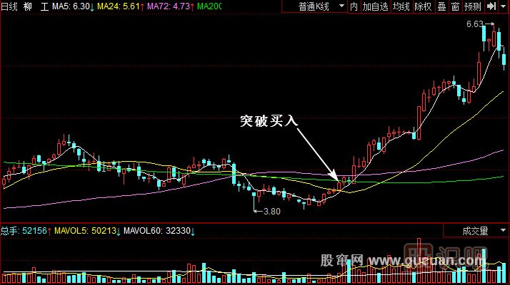(4)5日均量線(xiàn)突破60日均量線(xiàn)的時(shí)候說(shuō)明成交量已經(jīng)開(kāi)始走強,股價(jià)隨后就要大漲。