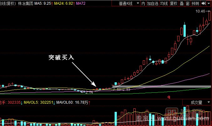 (1)股價(jià)開始緩慢上漲,隨著成交量溫和放大,加速的時(shí)機(jī)來臨,這個(gè)時(shí)候最好買入。