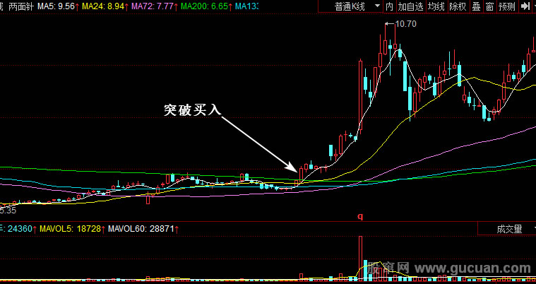 (2)只有突破平臺之后出現上漲勢頭的時(shí)候,才是最佳的買(mǎi)入時(shí)機。