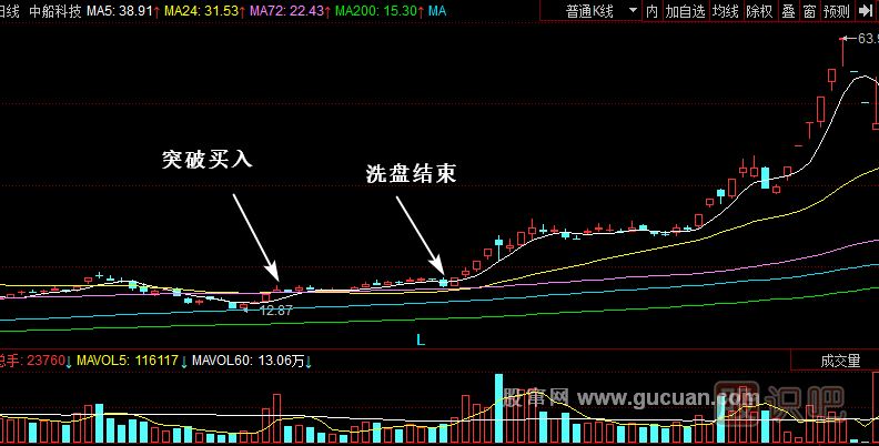 中船股份(600072)該股是黑馬股之一。在5.30暴跌過(guò)后,其均線(xiàn)系統形成了一個(gè)粘合在一起,然后發(fā)散向上的多頭排列。均線(xiàn)的推動(dòng)變成了強烈的買(mǎi)入信號。股價(jià)在5日線(xiàn)和72日線(xiàn)附近橫盤(pán)在一起向上,回抽生命線(xiàn)之后就啟動(dòng)了,這個(gè)時(shí)候就是賺錢(qián)機會(huì ),大膽買(mǎi)入就可以獲得利潤。股價(jià)從18元附近快速拉到28元,開(kāi)始構筑一個(gè)平臺,經(jīng)過(guò)一段時(shí)間的橫盤(pán)再次發(fā)力向上,突破30元平臺,之后連續狂飆,迅速翻倍到達63.97元。從12.87元上漲到63.97元只用了不到三個(gè)月的時(shí)間,這種快速漲4倍的股票并不多。我們要研究那些多數人沒(méi)有看到,但是主力又非常有資金實(shí)力又有魄力的,這樣的股票通常會(huì )成為超級黑馬股。牛市的大盤(pán)狀態(tài)是主力炮制翻倍黑馬的重要環(huán)境。一般股票上漲太快,很多人不敢買(mǎi)入。當人們認為一定會(huì )到100元以上的時(shí)候,該股卻出現瘋狂地出貨。該買(mǎi)的時(shí)候害怕再跌就錯過(guò)了買(mǎi)入機會(huì ),上漲的時(shí)候就盲目信心膨脹,因為貪婪又錯過(guò)了賣(mài)出的機會(huì )。