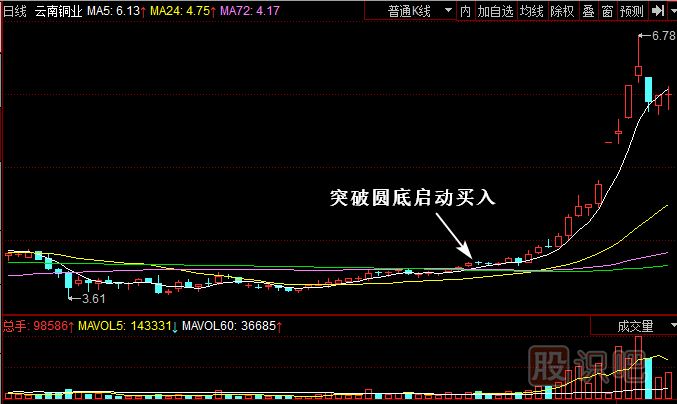 云南銅業(yè)(000878)該股是非常典型的股,在經(jīng)過長期的橫盤筑底的過程后,股價緩緩?fù)黄?a href=http://www.mztkc.com/GPRM/sy/1950.html target=_blank class=infotextkey>年線和所有的均線,開始慢慢抬頭。龍?zhí)ь^的形態(tài)非常明顯。在剛剛突破的時候就可以介入,長期持有。因為“橫有多長,豎有多高”,很多時候等的就是這樣的賺錢機(jī)會。一定不要輕易放手。在股票市場,任何股票都會被主力所利用,這些年里的有色金屬或者礦業(yè)的股票更是被瘋狂炒作過,一旦炒作完畢將帶來長期的盤整階段。一般的投資者最后不要去碰那些經(jīng)過大幅操作的股票,因為誰也知道一旦人氣消散、資金出逃后,股票會像風(fēng)箏斷線一樣,不知掉到那里去。通常超級強(qiáng)勢股都是沿著5日均線不斷向上的,很少跌破5日線,一旦高位出現(xiàn)“避雷針”信號或者跌破5日線要第一時間考慮離場觀望。