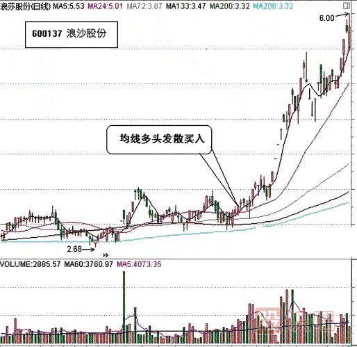 ST浪莎(600137)該股在突破年線之后,反復(fù)回抽確認(rèn)年線和24日生命線以及72日決策線。股價在不斷溫和上漲的過程當(dāng)中,均線成為多頭排列。發(fā)散向上的均線組合是超級強(qiáng)勢股誕生的標(biāo)記。一旦發(fā)現(xiàn)長期均線粘合在一起然后形成多頭排列的股票,一定要大膽操作,機(jī)會通常是巨大的,一次成功的操作可以讓本金翻倍。只有不斷做對的決策并且勇敢地堅持做大波段操作,這樣幾次成功之后,本金就已經(jīng)非常巨大了,隨時買賣都可能成為十大股東。