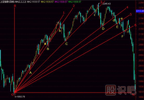 老師:當時(shí)是用多種分析技術(shù)作出滬市2245點(diǎn)是頭部的預報的。今天先介紹其中最簡(jiǎn)單易學(xué)、也最實(shí)用的內容“扇骨線(xiàn)”。