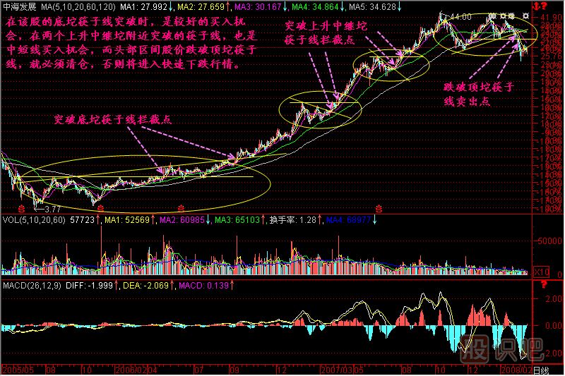 我們都知道坨突破后股價(jià)的運行速度會(huì )加快,而筷子線(xiàn)正是為了把握這突破瞬間而產(chǎn)生的,不管是向上突破還是向下突破,只要突破筷子線(xiàn),就意味著(zhù)發(fā)出了行動(dòng)信號,突破是你如果不行動(dòng),要么踏空,要么套牢!
