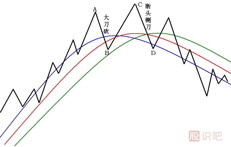 當“大刀砍”和“斷頭鍘刀”組合在一起時(shí),股價(jià)頭部形態(tài)確認無(wú)疑。