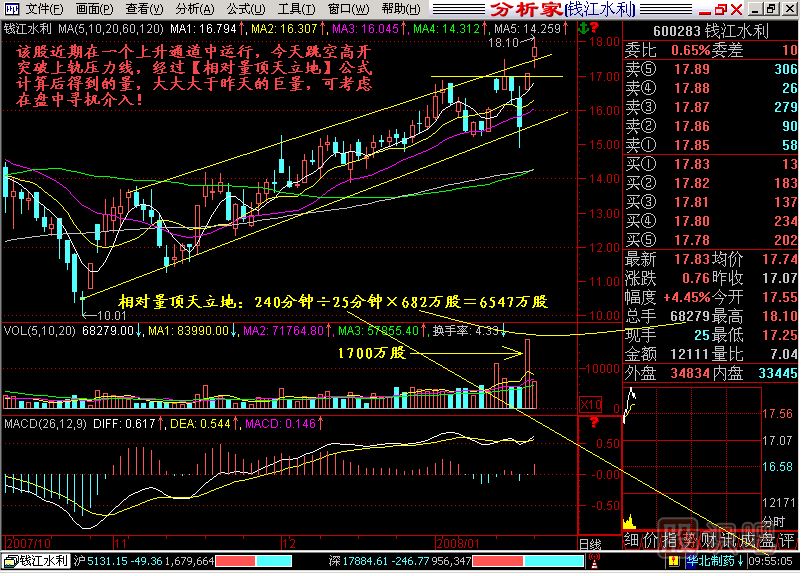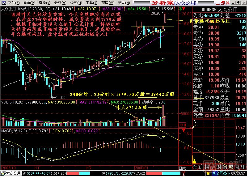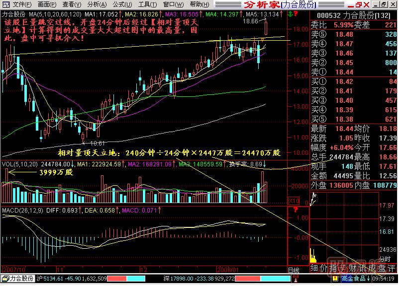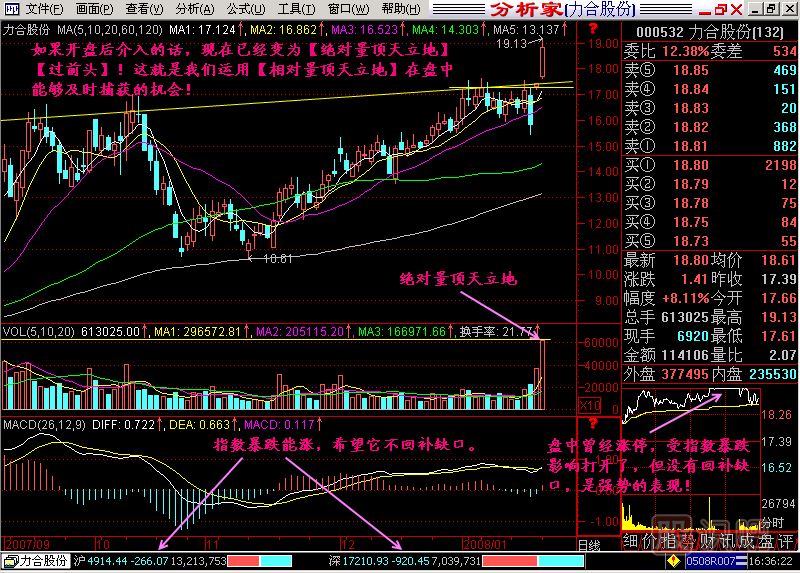 小結:該節的相對量頂天立地計算公式,非常適合在盤(pán)中及時(shí)發(fā)現收盤(pán)后,成交量可能成為絕對量頂天立地的股票,這樣就為我們盤(pán)中及時(shí)介入提供了可能。