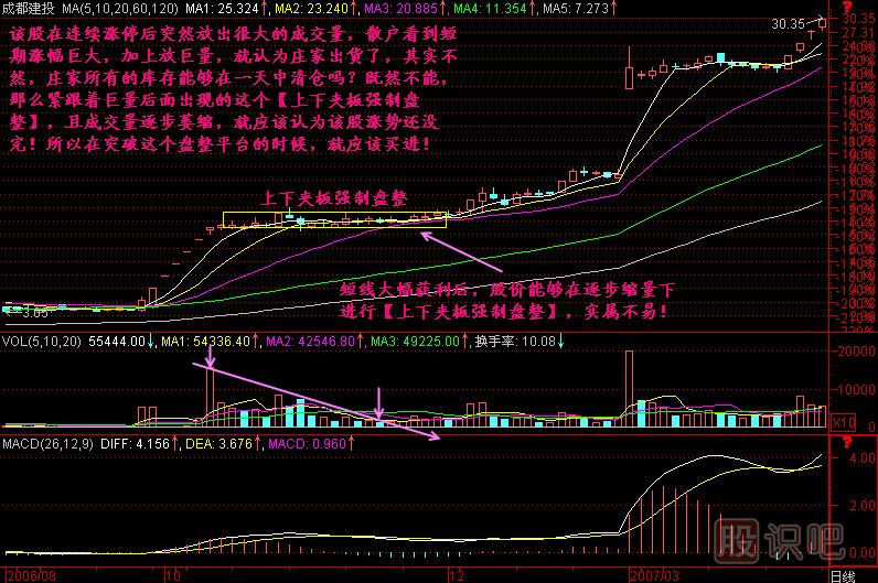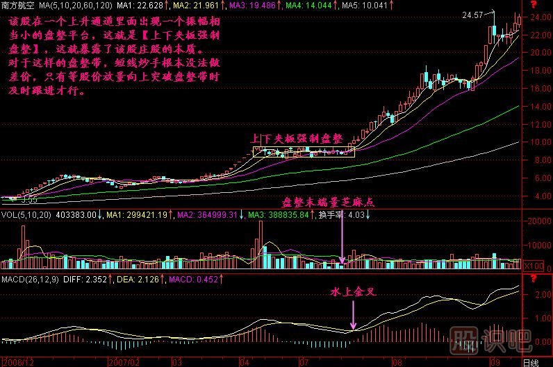 小結:在現階段,我們的股市還很年輕,既然年輕,就避免不了莊家主力對股價(jià)的操控行為,如果你發(fā)現一只股票在相對低位出現上下夾板強制盤(pán)整的走勢,一般是操盤(pán)手受到某種指令的操控這樣做的,這就說(shuō)明這個(gè)股票里面有莊家,那么一旦股價(jià)在后期向上突破,則是一個(gè)參與的機會(huì )。當然這要剔除那些已經(jīng)漲幅巨大、進(jìn)入高空飛行的股票,那樣的股票在高位走的是出貨拉鏈,和本節的內容是不同的,性質(zhì)不一樣。