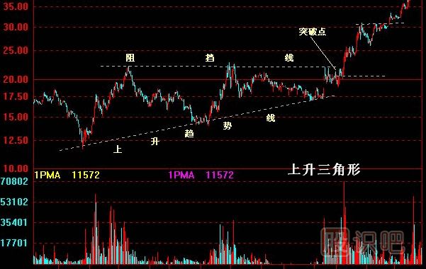 上升三角形顧名思義,其趨勢為上升勢態(tài),從形態(tài)上看,多方占優(yōu),空方較弱,多方的強大買(mǎi)盤(pán)逐步將價(jià)格的底部抬高,而空方能量不足,只是在一水平頸線(xiàn)位做抵抗。從K線(xiàn)圖中可繪制低點(diǎn)與低點(diǎn)相連,出現由左至右上方傾斜的支撐線(xiàn),而高點(diǎn)與高點(diǎn)相連,基本呈水平位置。單純從圖形看,讓人感覺(jué)價(jià)格隨時(shí)會(huì )向上突破,形成一波漲勢。但技術(shù)分析不能帶有單一性,一般形態(tài)派人士將價(jià)格形態(tài)作為一個(gè)重股票相關(guān)名詞解疑啥叫上升三角形點(diǎn),但他也不會(huì )忽視形態(tài)內成交量的變化。在上升三角形形態(tài)內的成交量也是從左至右呈遞減狀態(tài),但當它向上突破水平頸線(xiàn)時(shí)的那一刻,必須要有大成交量的配合,否則成交量太小的話(huà),價(jià)格將會(huì )出現盤(pán)整的格局,從圖形上走出失敗形態(tài)。如果在上升三角形形態(tài)內的成交量呈不規則分布,則維持盤(pán)整的機率要大。