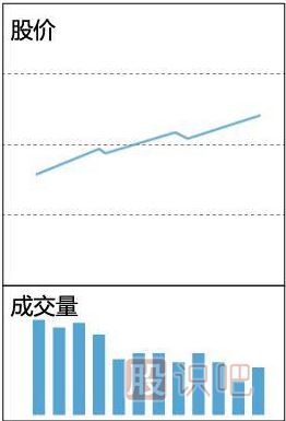 9. 量減價(jià)升,一般可繼續持有:成交量減少,股價(jià)仍在繼續上升,適宜繼續持股,即使如果鎖籌現象較好,也只能是小資金短線(xiàn)參與,因為股價(jià)已經(jīng)有了相當的漲幅,接近上漲末期了。有時(shí)在上漲初期也會(huì )出現“量減價(jià)升”,則可能是曇花一現,但經(jīng)過(guò)補量后仍有上行空間。