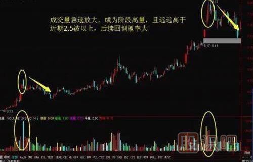 成交量急速放大,成前期平均成交量或者昨日成交量2.5倍以上,后續出現震蕩概率比較大,可減倉或者出局,爆量以后要震蕩: