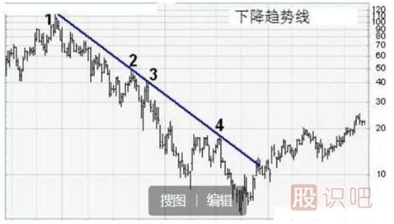 下降趨勢線(xiàn)(畫(huà)線(xiàn)原則:高度連接高點(diǎn))