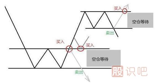 6、調整后的第二種可能,是個(gè)股在支撐性附近出現橫盤(pán)震蕩,出現此種圖形,適合我們用小倉位,依靠支撐和壓力線(xiàn),進(jìn)行高拋低吸,在箱體內進(jìn)行操作,但是這樣操作往往利潤不高,而且還有一旦市場(chǎng)選擇方向,那么存在操作方向可能做反的風(fēng)險。