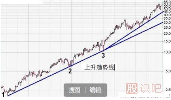 上升趨勢線(xiàn)線(xiàn)(畫(huà)線(xiàn)原則:低點(diǎn)連接低點(diǎn))