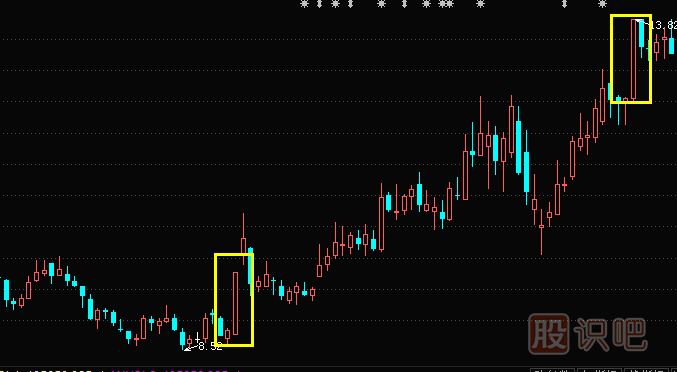 光頭光腳大陽(yáng)日k線(xiàn),是多方發(fā)起強大攻勢,取得了全勝的結果。