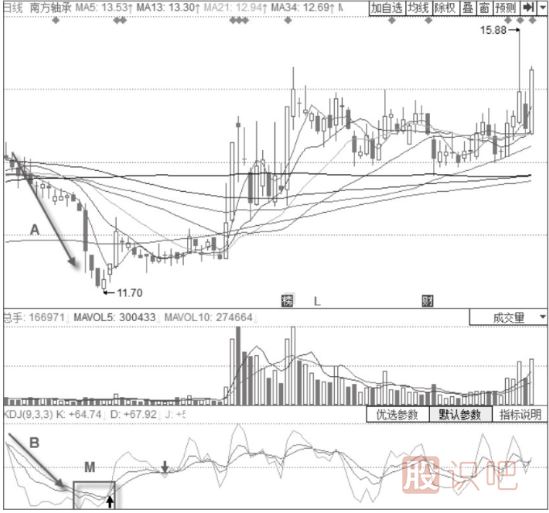 股票技術(shù)圖形分析給你講股價(jià)下跌趨勢中的KDJ底部信號