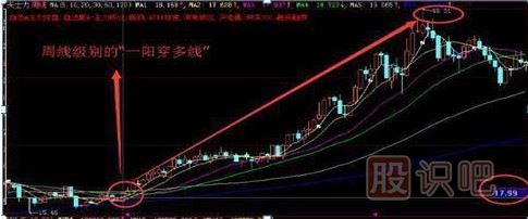 另外:周線(xiàn)和月線(xiàn)級別的“一陽(yáng)穿多線(xiàn)”更加確定,級別更高: