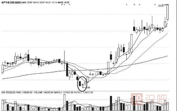 需要特別強調的是,并列三陽(yáng)線(xiàn)屬于一種相對溫和的見(jiàn)底反彈信號,它沒(méi)有突發(fā)性和爆發(fā)性的特點(diǎn),不是大逆轉行情的標志,而是在前一輪較大行情后陷入中期調整時(shí)見(jiàn)底的信號。因此,投資者必須在那些有驚人上漲幅度之后又經(jīng)歷了較長(cháng)時(shí)間調整的個(gè)股中尋找此類(lèi)轉折中的投資機會(huì )。建議從那些創(chuàng )出歷史新高之后股價(jià)出現了較為深度調整,但從基本面判斷其在后市還將出現更高價(jià)位的品種中去尋找。