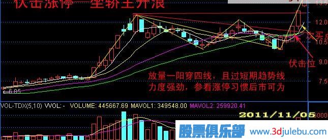 方法是在把握目標出現位置的前提下提前一天進(jìn)入伏擊位置等待漲停出現。