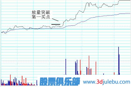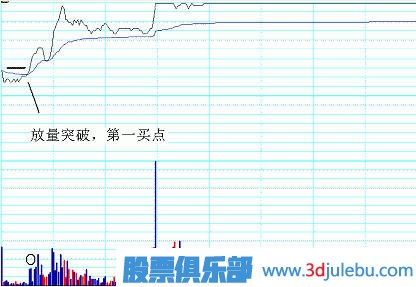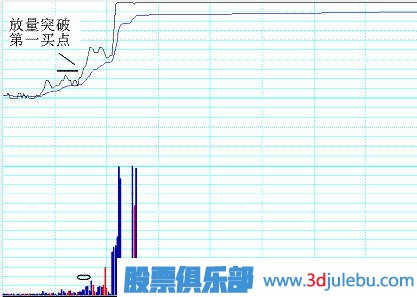 由于在這個(gè)位置股價(jià)往往具有真正意義上的第一次創(chuàng )下盤(pán)中的新高,第一次創(chuàng )下盤(pán)中的最大量能,因此這個(gè)買(mǎi)點(diǎn)把它稱(chēng)之為:第一買(mǎi)點(diǎn)。第一買(mǎi)點(diǎn)的位置往往是合理的,而且投資者也比較容易從圖中的量?jì)r(jià)變化上找到這個(gè)點(diǎn)位。