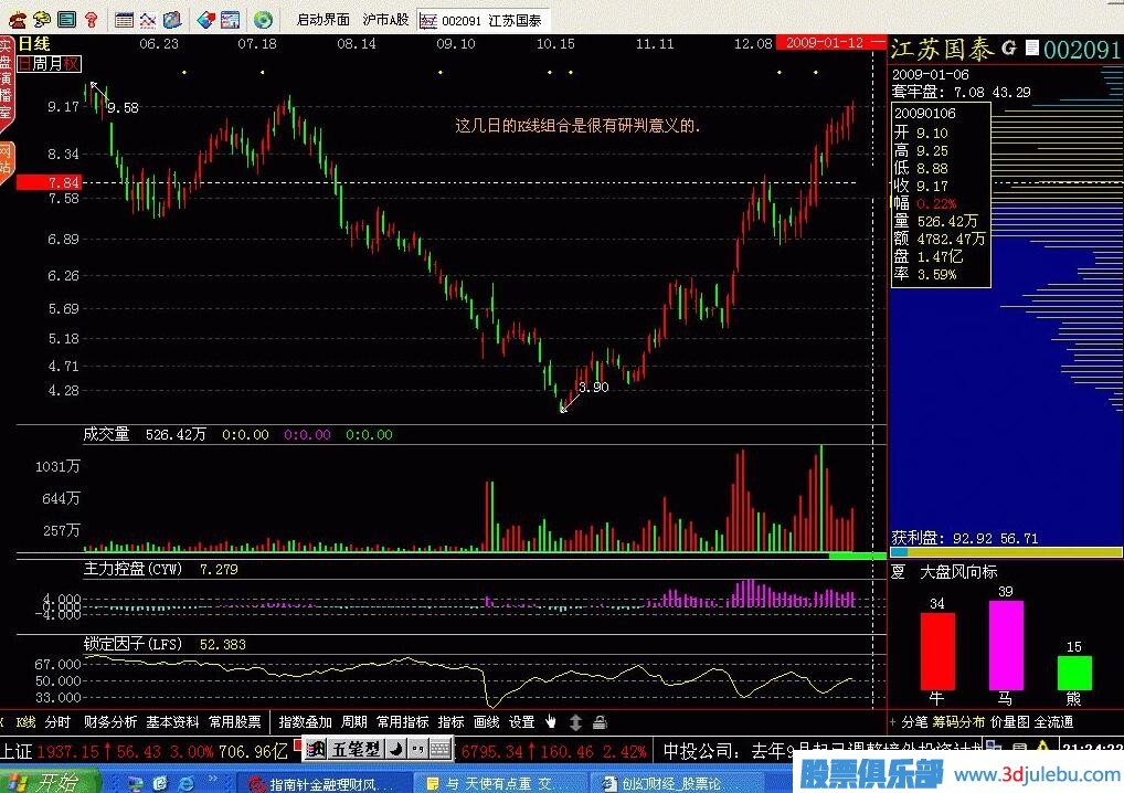 09年初的2091成為年終行情的超級翻倍黑馬,以目市計(jì)算收益已高達(dá)416%,我很走運(yùn)的捕捉到了她啟動(dòng)之初的身影.