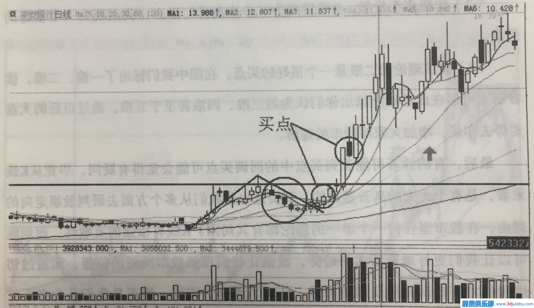 (2)均線(xiàn)多頭發(fā)散,K線(xiàn)展現為“步高升”形態(tài), 我們視為一個(gè)很好的買(mǎi)點(diǎn)。