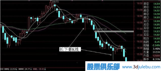 從上圖中可以看出,雖然K線收出了長下影線,但股價(jià)并沒有獲得支撐,而是繼續(xù)下跌。