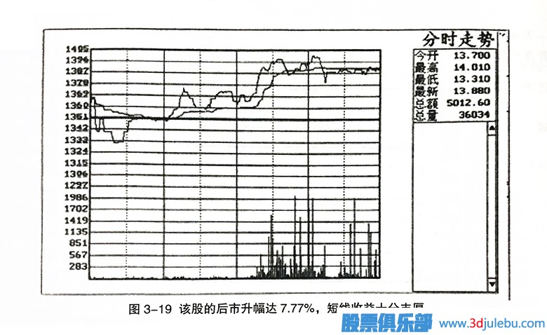 (1)必須是股價(jià)經(jīng)過(guò)一段深跌后,出現“尾市放量,股價(jià)上升”這一形態(tài),才是短線(xiàn)信號,否則投資者應慎重對待。