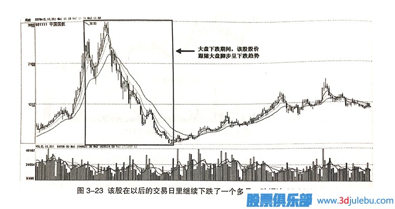 第三,漲勢中尾市放巨量,此時(shí)不宜介入,次日開(kāi)盤(pán)可能會(huì )遇拋壓,故不易漲。跌勢中尾市放巨量,乃恐慌性?huà)伿鬯?是大盤(pán)將跳空而下的信號。