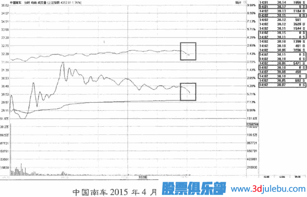 當然,在大勢向好時(shí),大賣(mài)單往往也會(huì )出現在委托盤(pán)口,為的就是吸引大買(mǎi)家吃進(jìn),此時(shí)大賣(mài)家不顯身,大買(mǎi)家通常也無(wú)法顯身;而在下跌趨勢中,看好該股的大買(mǎi)單也往往會(huì )出現在委托盤(pán)口,為的就是等待大賣(mài)家顯身。表2-2為2015年4月24日浙江眾成14:39-15:00的分時(shí)成交明細,明細表顯示并無(wú)大單。