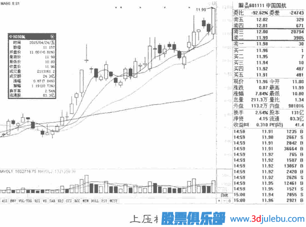 在報價(jià)欄里出現大量的賣(mài)單而少量的買(mǎi)單現象,俗稱(chēng)“上壓板”。如果空頭真要出貨,往往不會(huì )掛在報價(jià)欄里,即使其大賣(mài)單只成交了部分而剩余的掛在賣(mài)單上檔處,也會(huì )馬上撤單,重新照現有