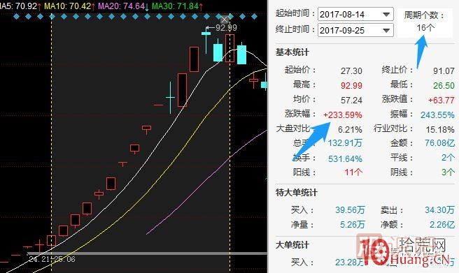 波段漲幅:截止雙頭反包,234%,剔除停牌歷經(jīng)16個(gè)交易日。