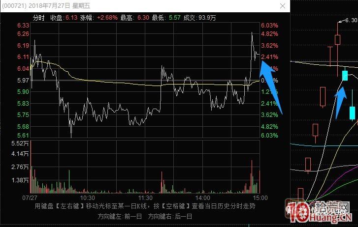 4、前一天強勢的漲停板,次日開(kāi)盤(pán)分時(shí)出現“力不從心”。