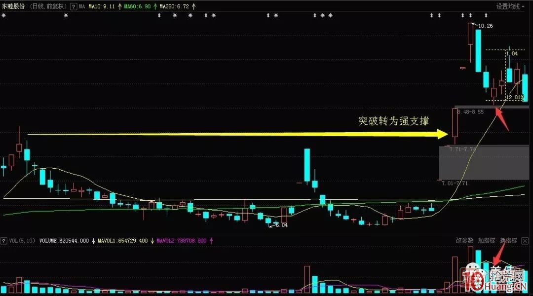 上漲為5連板,3板放量突破前高區間,轉為強支撐,為潛在的回踩位置。