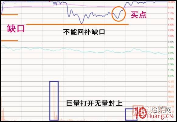 第二種是主力的洗盤(pán)行為,巨量打開(kāi)是主力用自己的籌碼打開(kāi)的,目的是要把前期獲利盤(pán)和套牢盤(pán)洗出來(lái)。這樣,往往在打開(kāi)漲停之后股價(jià)還會(huì )繼續擴大鋸齒的開(kāi)口,但是成交量卻不大,這是因為被洗盤(pán)出局者大多數是散戶(hù)。當成交量萎縮到一個(gè)極致時(shí),主力又會(huì )重新封上漲停板,而且是巨量封死,不再給市場(chǎng)以任何吃進(jìn)的機會(huì )。