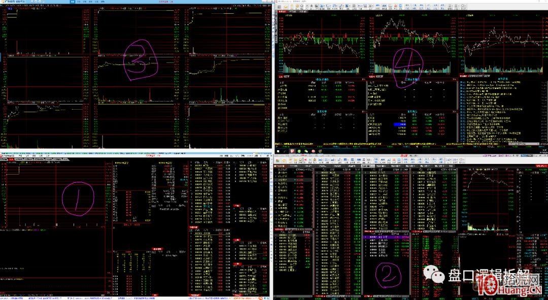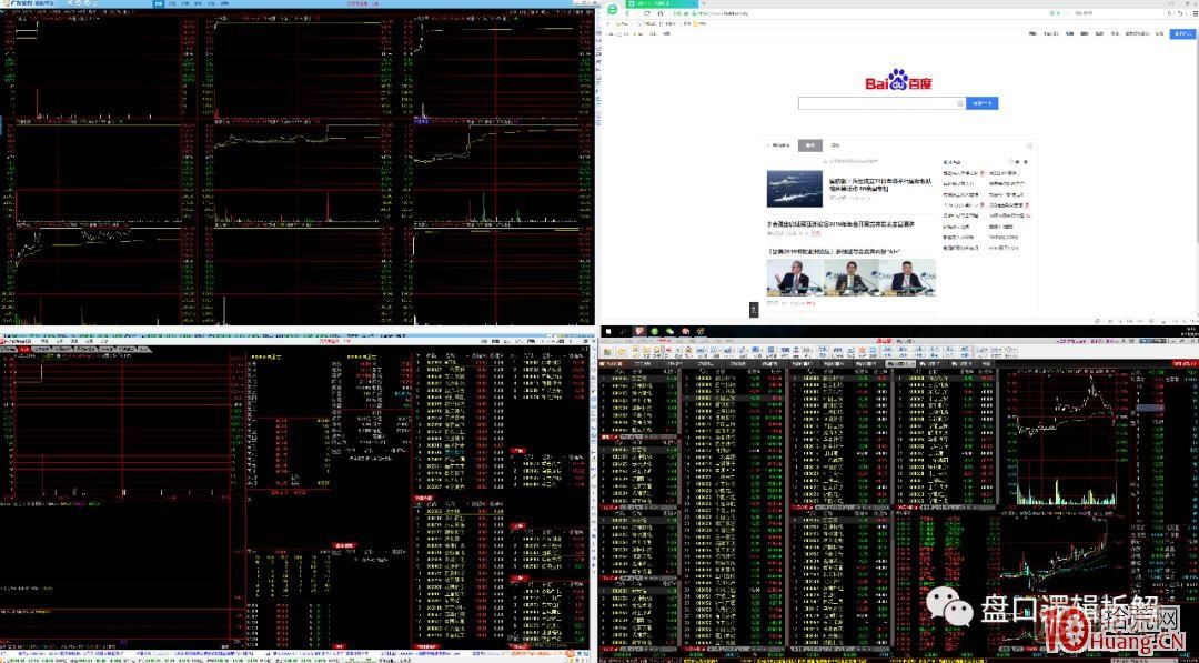 1)看指數,看個(gè)股(四塊屏幕的截圖放在一起了)