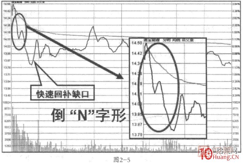 高開(kāi)戰法之拉高出貨形態(tài):分時(shí)倒N形走勢