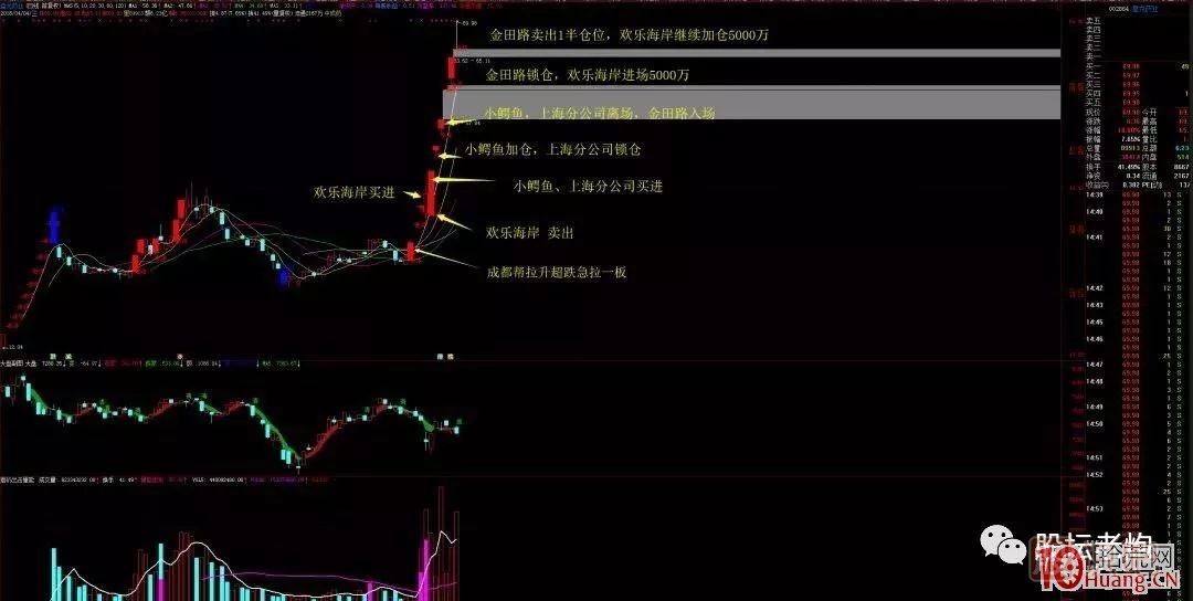 成都幫拉升超跌急拉一板,然后連續秒板,沖擊四板引來(lái)歡樂(lè )海岸入場(chǎng),然后炸板,第二天深圳歡樂(lè )海岸割肉,隨后午后拉板龍頭強勢反包,小鱷魚(yú)和上海分公司入場(chǎng),第二天快速急拉秒板,小鱷魚(yú)加倉,中信上海分公司鎖倉,三板爛板,小鱷魚(yú),上海分公司離場(chǎng),金田深南哥入場(chǎng),之后一字四連板,5連板金田鎖倉,歡樂(lè )海岸進(jìn)場(chǎng),6連板歡樂(lè )海岸加倉,金田減倉,隨后7連板出貨,總體所有游資都在這只票上吃到了大肉。