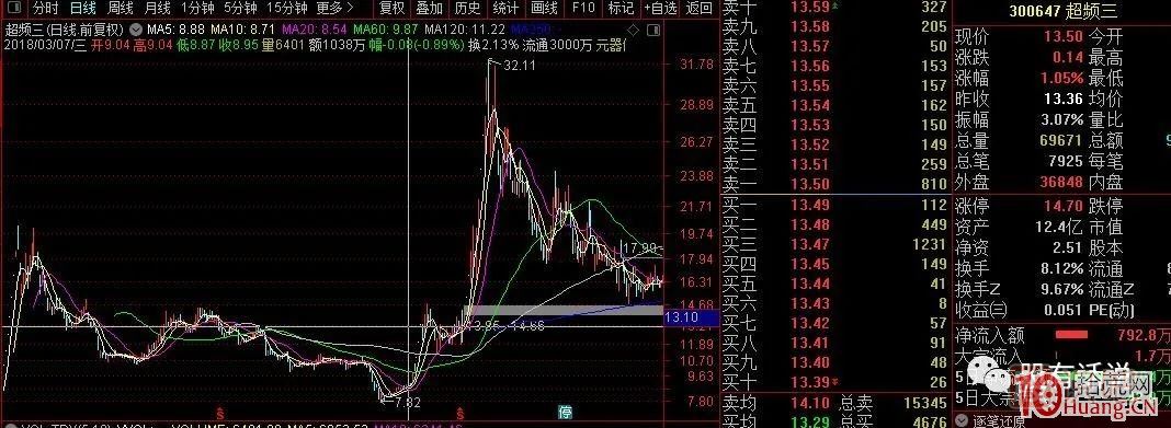 但是,如果封板后成交量超過(guò)25億元,達到理論最大值的3/4以上,這個(gè)板的暴量可能就偏大了,就不一定健康了,說(shuō)明歷史籌碼一下全給了多方,對多方的資金會(huì )是一種很大的消耗,后面的資金能不能接力,是一個(gè)需要思考的問(wèn)題。當然,這還和個(gè)股的體積有關(guān)系,如果此股市值并不大,充分暴量后占用的資金量級在市場(chǎng)中不大,那也沒(méi)有關(guān)系,反而是好事!