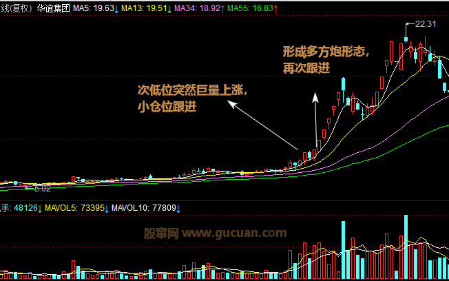 因此今后遇到底部突然放巨量的情況時(shí),切忌盲目介入,應該先將其列入股票池進(jìn)行跟蹤觀(guān)察,如果股票直接連續放量且站上重要支撐位置, 則可考慮伺機介入,如果股票很快便恢復平靜且長(cháng)時(shí)間沒(méi)有動(dòng)作便可取消其跟蹤行動(dòng),如果第-次放巨量后不久股價(jià)出現明顯異動(dòng),這時(shí)應該在股價(jià)站上重要支撐位后快速介入,短期收益應該不小,如上圖的正和股份便可在再次放量后站上所有短期均線(xiàn)時(shí)快速介入,短期收益超乎想象。