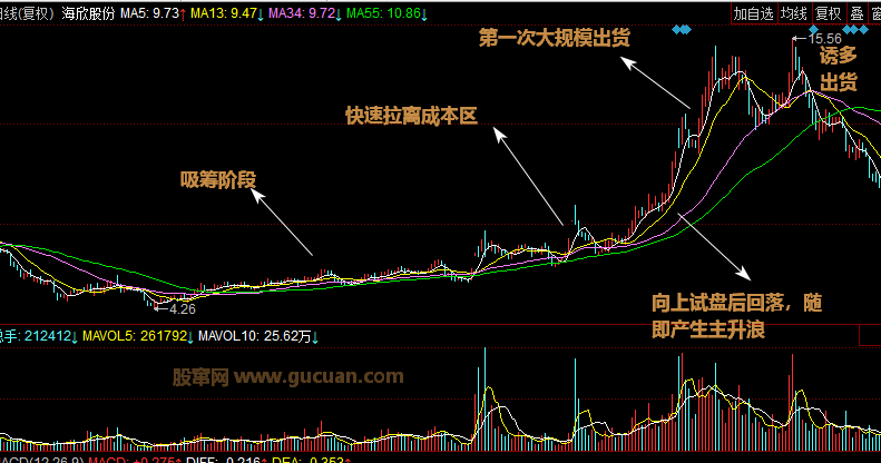 上面是莊家坐莊的整個(gè)過(guò)程,希望讀者能夠認真體會(huì ),深刻認識量能在分析莊家行為中的重要性。