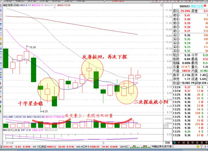 股價(jià)連續下跌之后先以十字星企穩,沿著(zhù)5日線(xiàn)緩慢爬升,期間會(huì )夾雜著(zhù)小陰,但整體重心不斷上移,5日線(xiàn)首次上穿10日線(xiàn),到達一定高度后,反身拉回,再次下探,往往陰線(xiàn)實(shí)體會(huì )逐步加長(cháng)