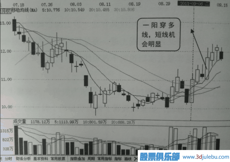 如圖2所示,該股在9月6日當天出現放量一陽(yáng)穿多線(xiàn)的特征,說(shuō)明短線(xiàn)機會(huì )明顯,當天尾盤(pán)可伺機跟進(jìn)。結果該股在9月6日之后股價(jià)進(jìn)一步上漲,且上漲幅度不小,如果跟進(jìn)短線(xiàn)收益理應不菲。